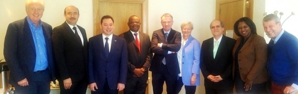 The African Union of Broadcasting (AUB)’s Director General, Mr Grégoire Ndjaka joined his peers of the World Broadcasting Unions (WBU), in Dublin, Ireland, last June 29th 2017 to discuss matters that rock the life of broadcasting across the globe. From right to left: Michael Mc Ewen (NABA), Javad Mottaghi (ABU), Noel Curran (EBU), Sonia Gill (CBU), Grégoire Ndjaka (AUB), Latine America Broadcasting Union's Representative, M. Bassel (ASBU), Simon Fell (Technical Director (EBU). The meeting was held against the backdrop of the European Broadcasting Union (EBU)’s 78th General Assembly organized from 28th June to 1rst ...